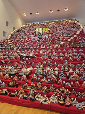 この時期、「三十段飾り 千体のひな祭り」と称して、高さ6メートルの段飾りにおよそ600体の雛人形が展示されます。