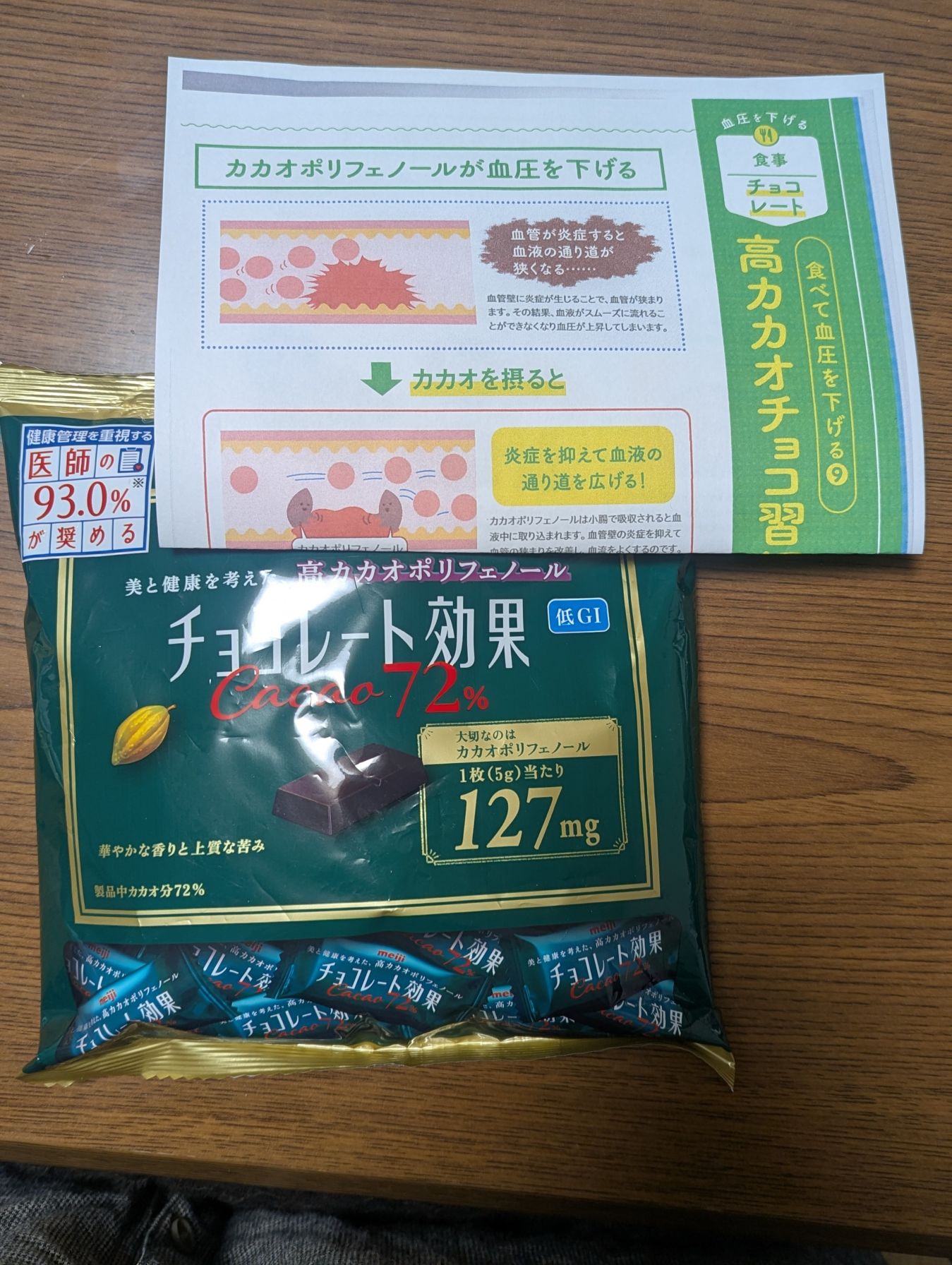 「私は最近血圧と中性脂肪が高くて、チョコがいいと聞いて食べるようにしています」と。