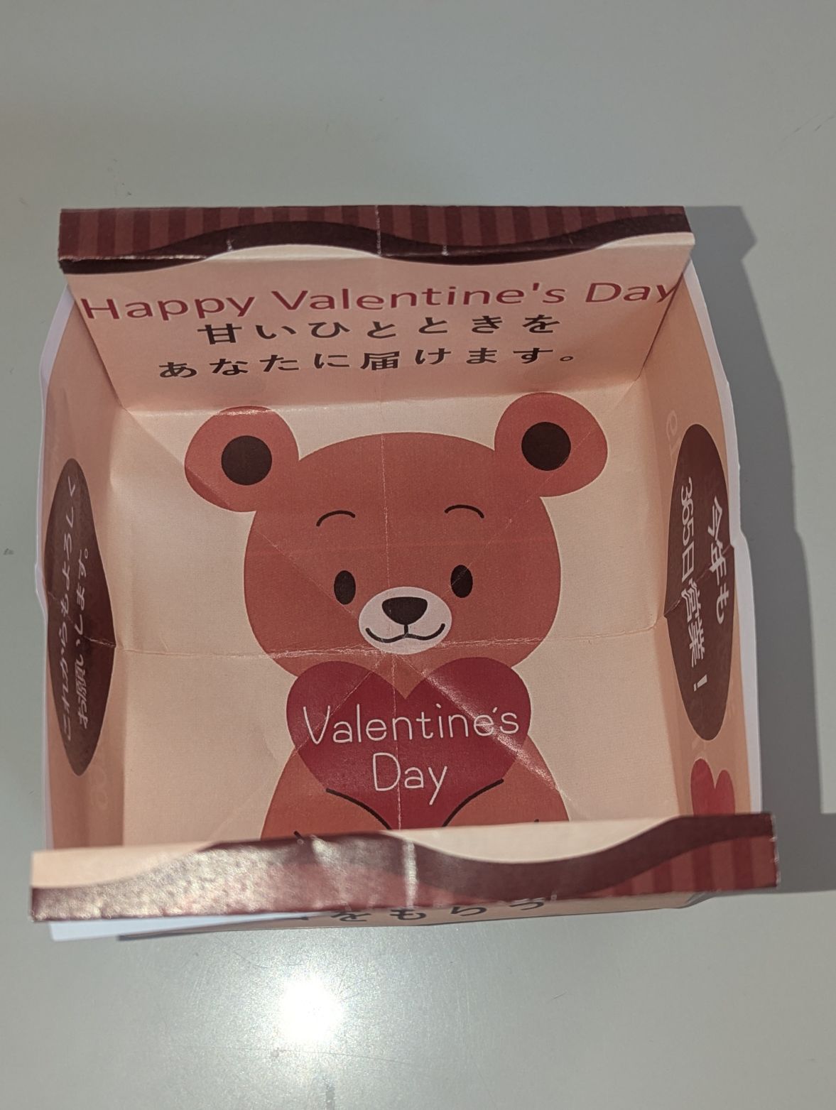 よく見たら、営業さんの名前も入っていて、オリジナルの折り紙になっている箱でした。